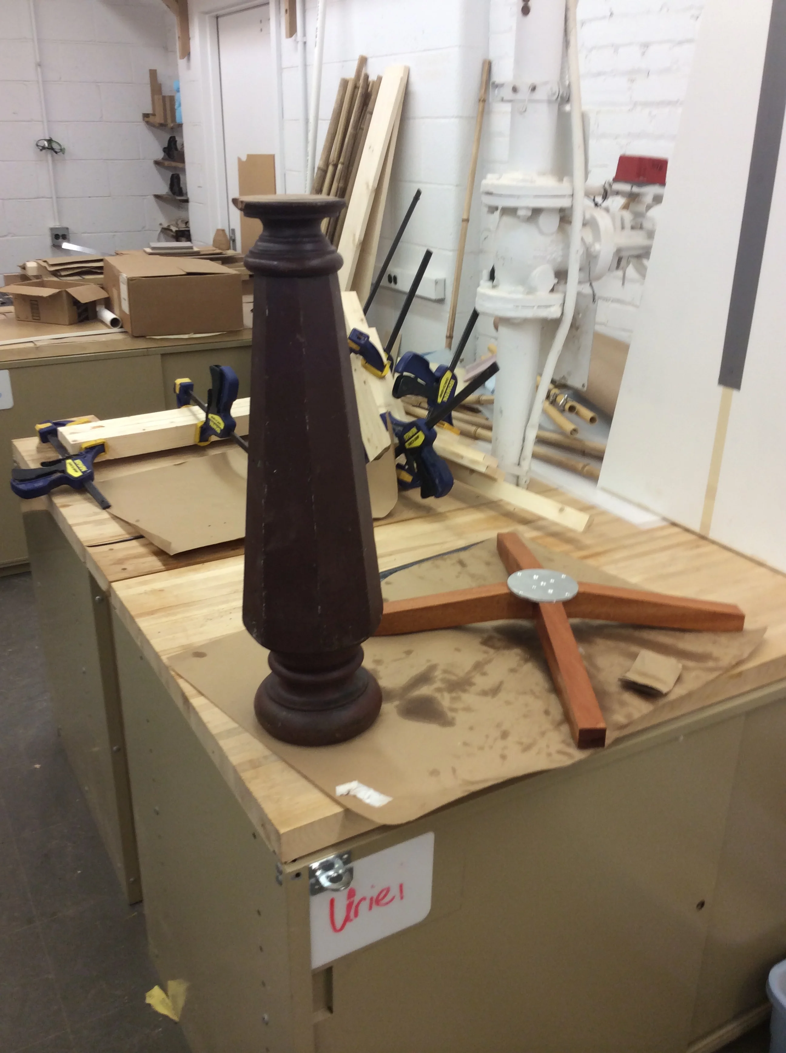 This café table is a fusion of old and new. I am very inspired by repurposed material and for this table, I wanted to mix the old with the new. The column holding the table top is a part of an old bannister. Though it is painted, the wood underneath is walnut and has held up for many years and should hold up for many more. You are meant to enjoy a warm beverage around this table either by yourself or in the company of close companions.